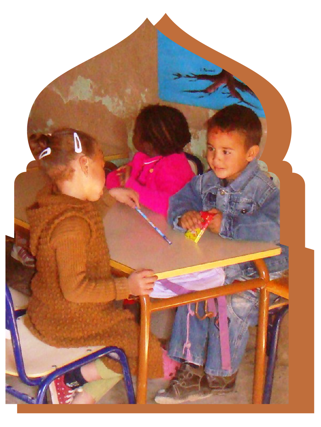 Un hecho que sorprende en este poblado es el mimo y respeto con que son tratados los niños, que rebosan de alegría y bienestar. En este poblado, hace unos veinte años, Mohamed, un joven maestro, apasionado por el legado de su pueblo, de su gente y enamorado de los niños, decidió entregarse en cuerpo y alma al cuidado de los pequeños y creo una escuela con seis alumnos.
